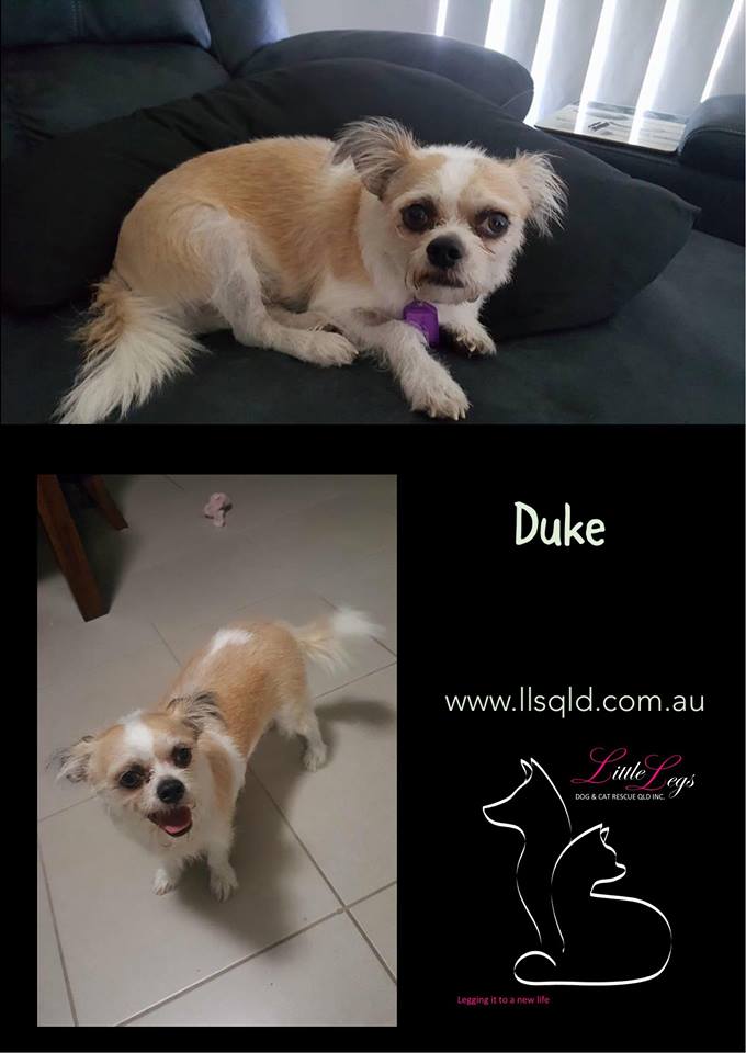 Hi everyone, my name is Duke. I am looking for a quiet home that I can relax and grow old in. I do snore when I am excited and when I'm sleeping. I will let you know when someone comes to your door as I am very alert. I love belly rubs and cuddles. I am good to walk on a leash and enjoy going for walks around the block. I do like to be near you always to make sure you're safe. I do get nervous when meeting new people and will tend to run away and bark.
