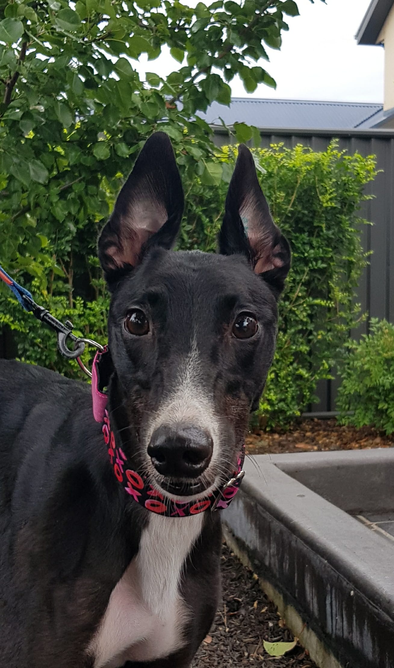 This little girl is the full packagage! Weighing in at just 22kg she is more like small whippet then a greyhound but makes up for her size with a wealth of affection. Maci is currently in foster care with three cats and five chooks, who she ignores. Maci is quite shy and prefers women, but over time warms up to those around her. She wants to greet everyone who arrives at the front door with a waggy tail and then heads back to her bed for another snooze.