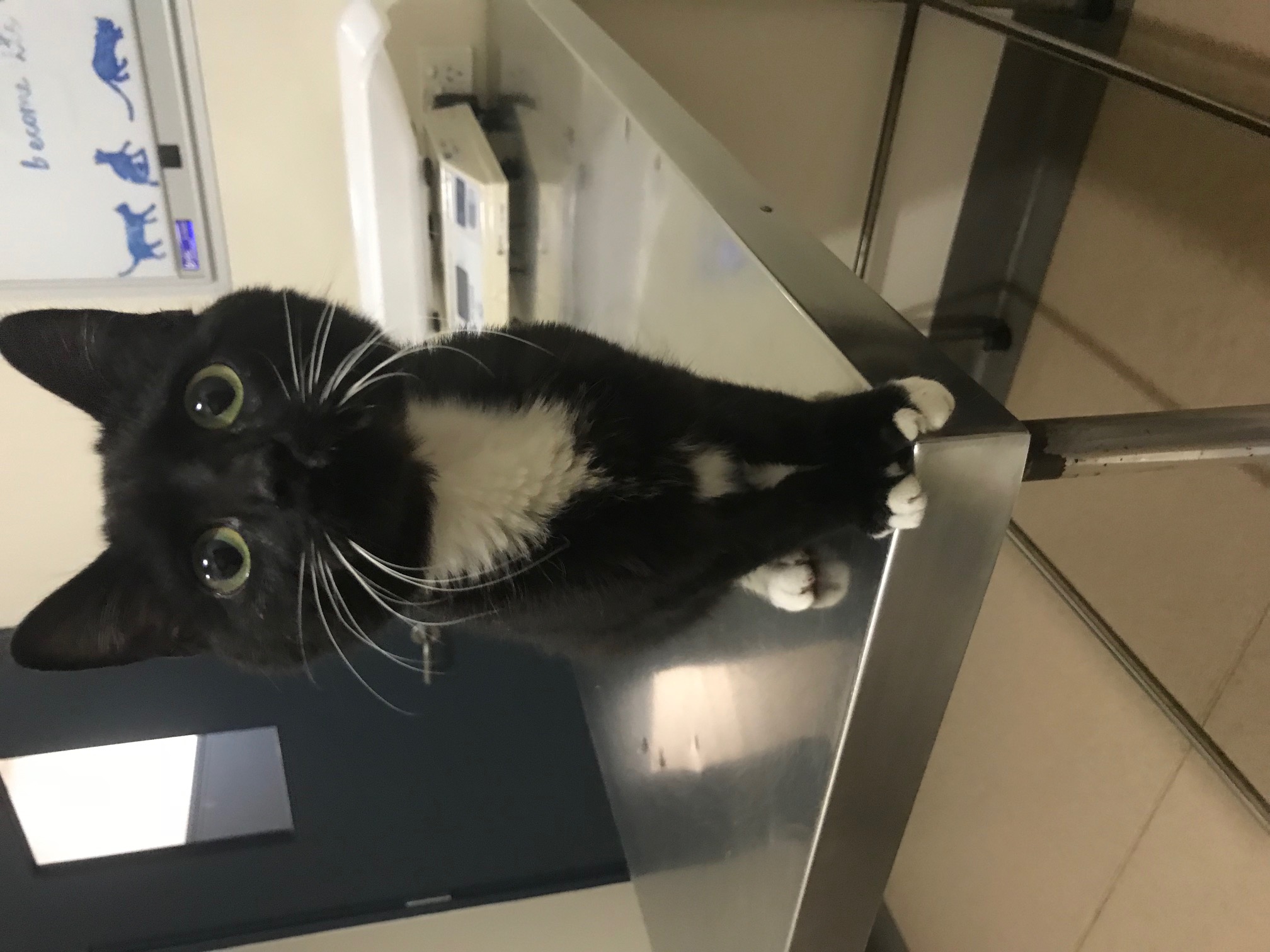 He is a 10 month old manx cross born with a stricture making it difficult for him to defecate. He has had multiple procedures to widen the stricture and give him better bowel control.