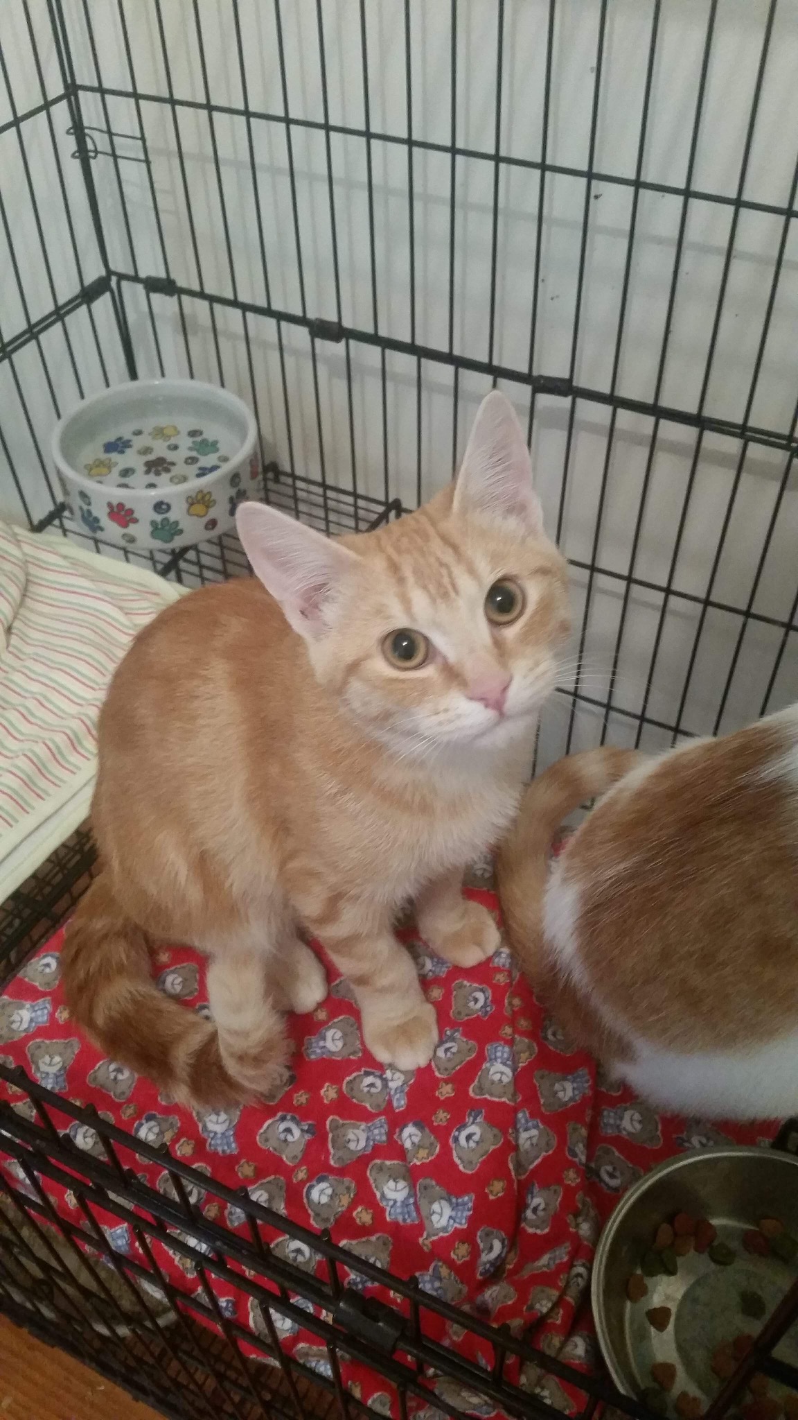 Hes great with other cats and will get used to new dogs with proper introductions.