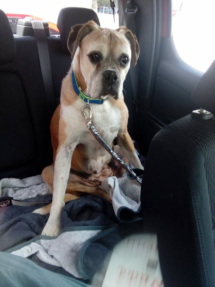 LuLu is the perfect senior citizen. She is happy and loves everyone-people, dogs, cats and anything else that might happen along. She has settled in with her foster carers and walks round wagging her tail and trying to persuade the resident Boxer to play with her. She has been vet checked and is very healthy for her age. She will have another check as she may need some medication for a bit of arthritis. She will be a very special member of some lucky family!