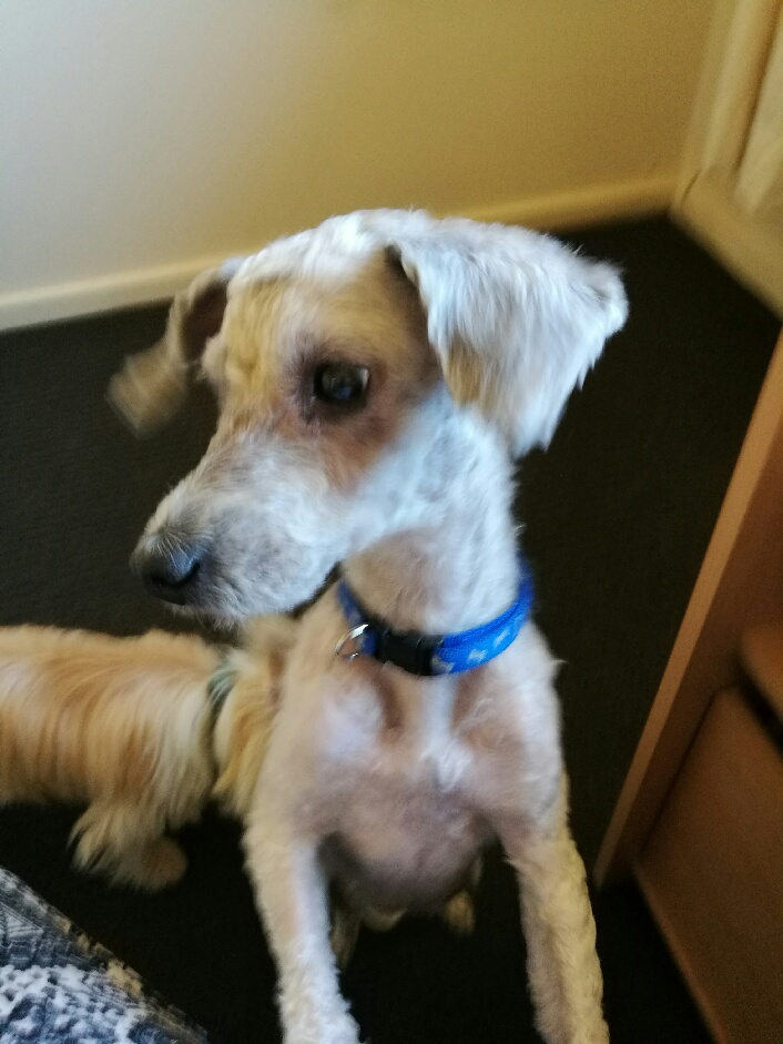 Reagan came to us via the Tennant Creek Pound. Her owners knew she was in the Pound, but they were going on holiday and said they didn't have time to pick her up and asked the Animal Welfare Officer to euthanize her. Of course that was never going to happen. Her coat was a mass of dreadlocks though, so we had no choice but to fully clip her. When her coat grown in she will look like a fluffy angel! She will need regular maintenance of her coat as it was really long.
