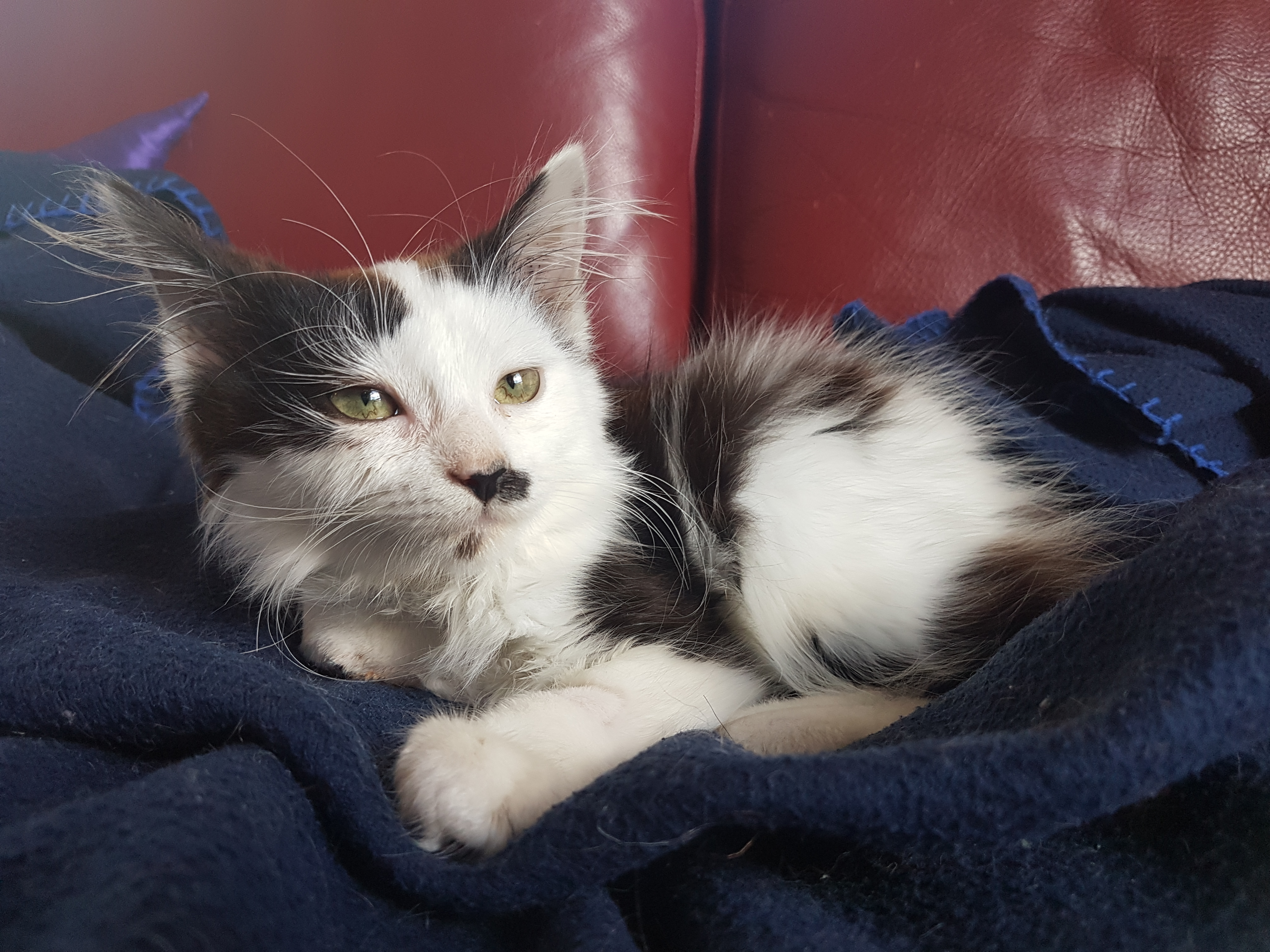 Due to an injury before coming into care, miss Freya has had her front right leg amputated. She is coping very well without this leg and it hasn't stopped her in any way.