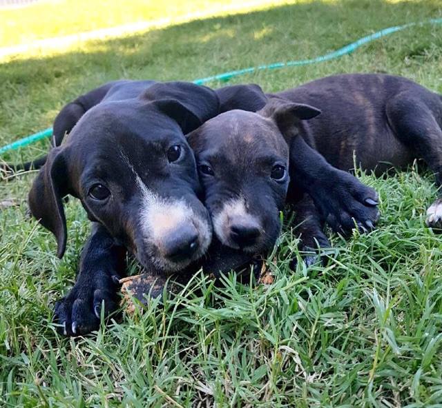 The skinny undernourished puppies which were dumped at the pound are improving every day and are starting to look like normal puppies....They are showing their playful little personalities and love to be cuddled and spoiled. We are pretty sure that they are not going to be very big although the jury is still out on what their breed could be.