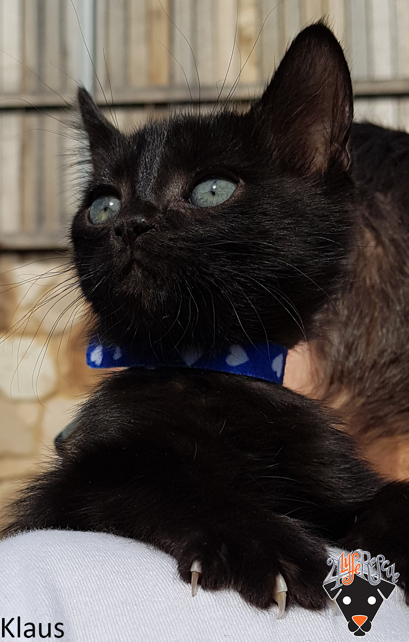 These bright little eyes are just full of mischief! Klaus is a tiny bundle of fun, chatting happily and playing with his Army of Darkness siblings and his foster parents other cats. At the end of the day it’s snuggle time and Klaus will curl up with you on the couch and snooze through some quality TV. Set up a meet with your new best bud by contacting us today!