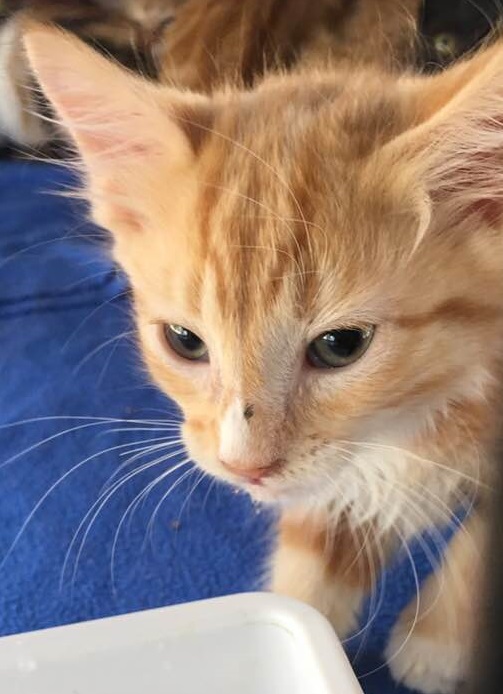 My siblings and I had a REALLY rough start and we were pretty sick when we were rescued but now we have had some medication and lots of TLC and we're doing great. I'm the smallest of my family but I have the BIGGEST personality! Once I know you I will purr and purr and purr, then march up and down making puddings in my blankets or on your lap or anywhere convenient.