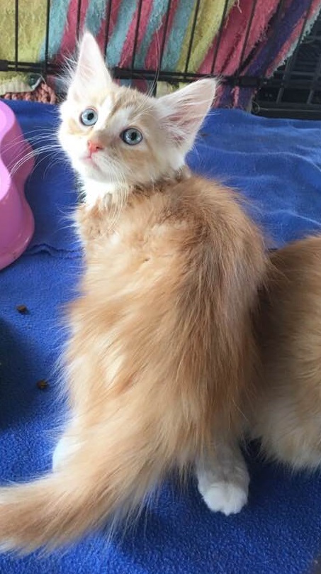 Now, it should be noted that I'm rather gorgeous. I'm told that people seem to have a real thing about kitties with blue eyes and I'm also told that it's pretty rare for a ginger cat like me to have such pretty sparkling baby blues! All kittens start off with blue eyes, which then change colour at about 7 weeks of age. My siblings eyes have all changed but mine... they still look like you're staring at the ocean! Also I'm a soft, powdery shade of ginger with long, flowing locks.