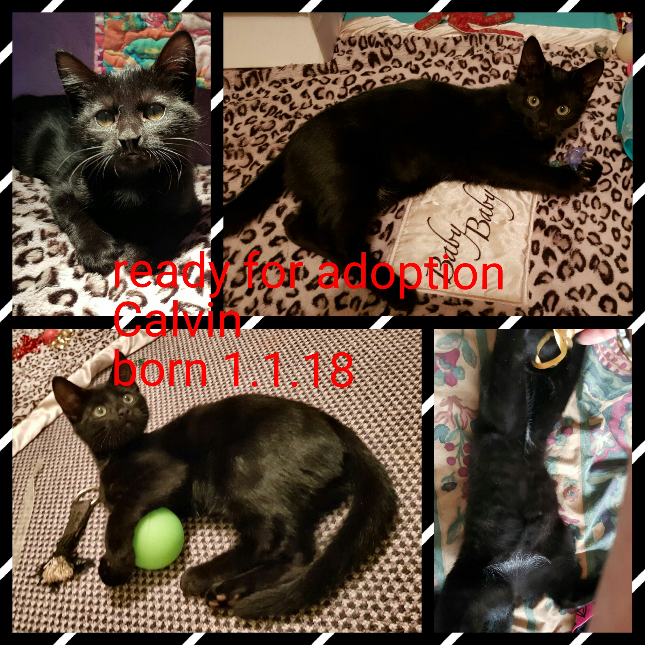 Calvin is a magnificent shiney black kitten with white fur undies!!