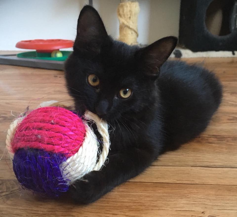Puzzle is a sweet and relaxed black girl who purrs readily, loves to play, sit in your lap, and doesn’t mind being held like a baby! She’s good with older children (there’s a 10 year old in her current foster home). Puzzle is 10 wks old, microchipped, vaccinated, flea and worm treated and will be desexed when big enough. Her adoption fee is $200. Puzzle is in Foster so if you’d like to meet her then please send us a message. Thx
