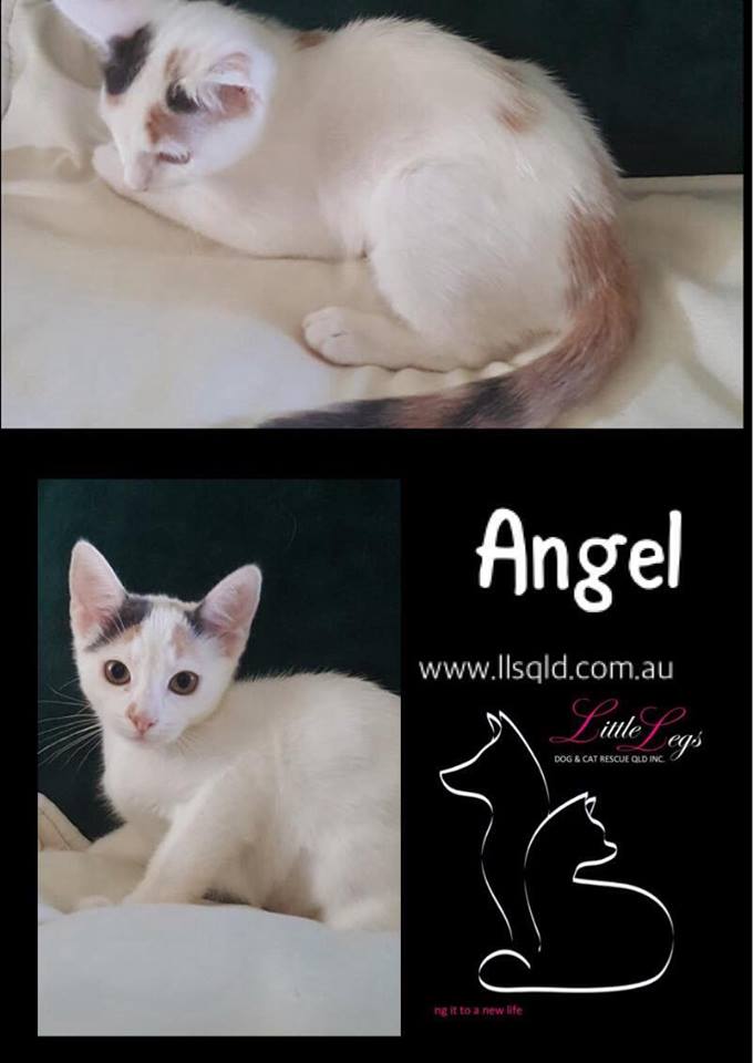 Angel is a beautiful, lovely natured, sweet little girl. She loves to play especially with a ball, but is more than happy to play with anyone who wants to play. Angel is great with other cats especially larger cats that let her play with their tail. Angel loves to curl up on your lap and will snuggle with you. She would fit into most homes as she is very gentle and calm.
