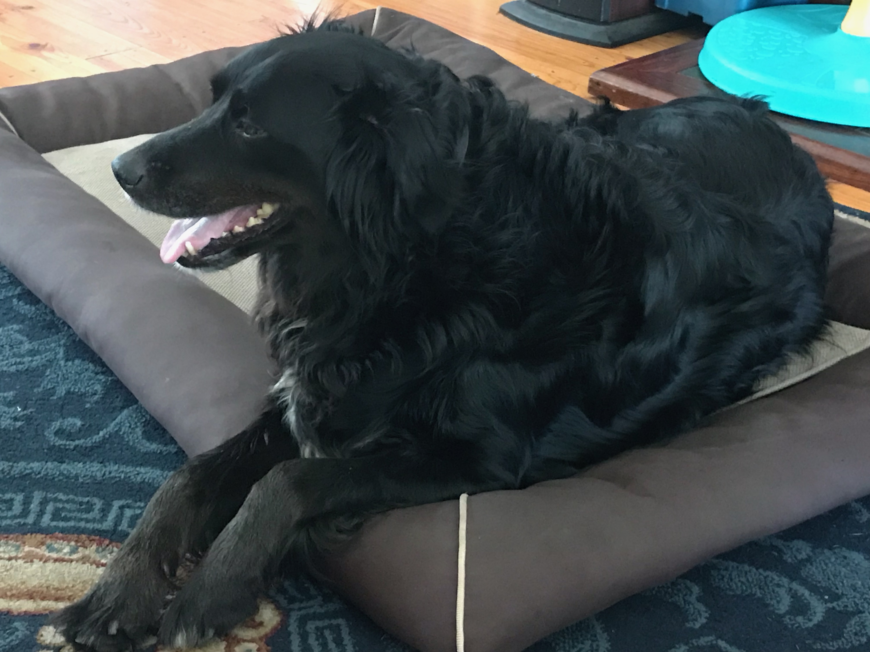 His owners sadly went into retirement care and can't take him. Bundys happy by your side and a great companion. He's good with other dogs. Not tested around cats. Needs to be older children as he's never had to deal with boisterous play and young fingers.