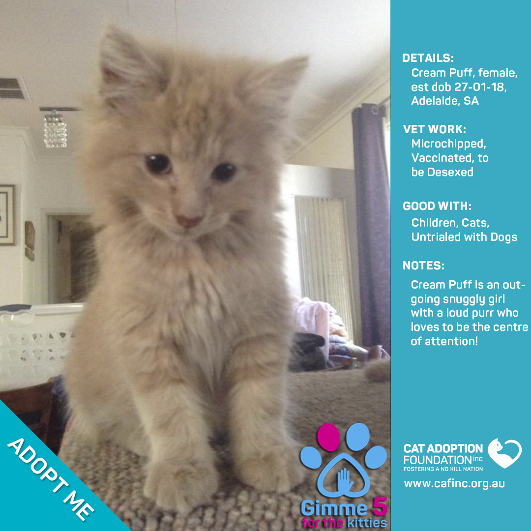 Donate to Cream Puff at Cat Adoption Foundation Incorporated via Shout