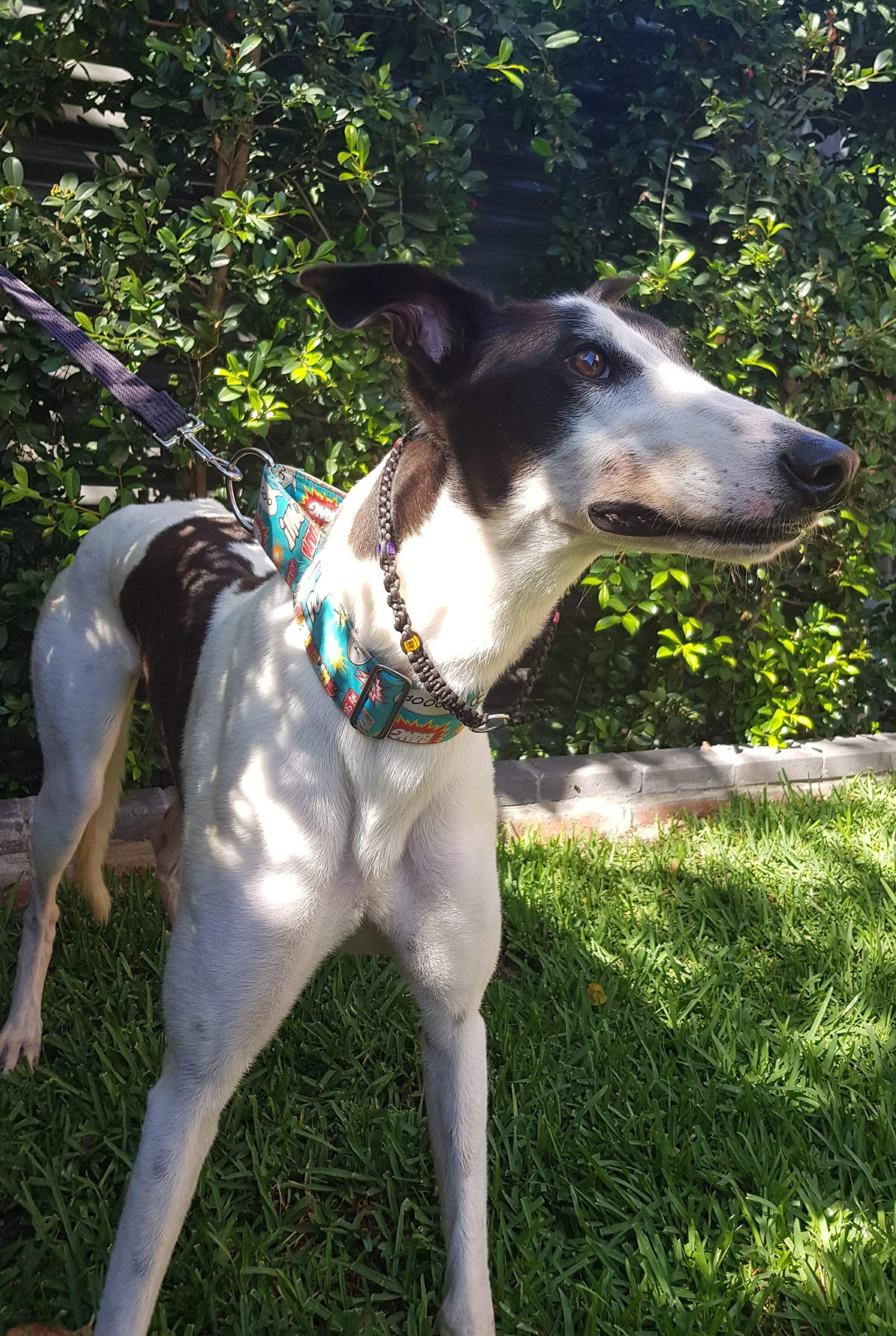 This young boy, Morgan, tried racing but was absolutely hopeless. He’s looking for a home where he will have lots of company as he loves his people so much. He enjoys a little zoom with the greyhounds in his foster home and then settles right back onto the couch. This boy is a real looker, so be quick to come and meet him!