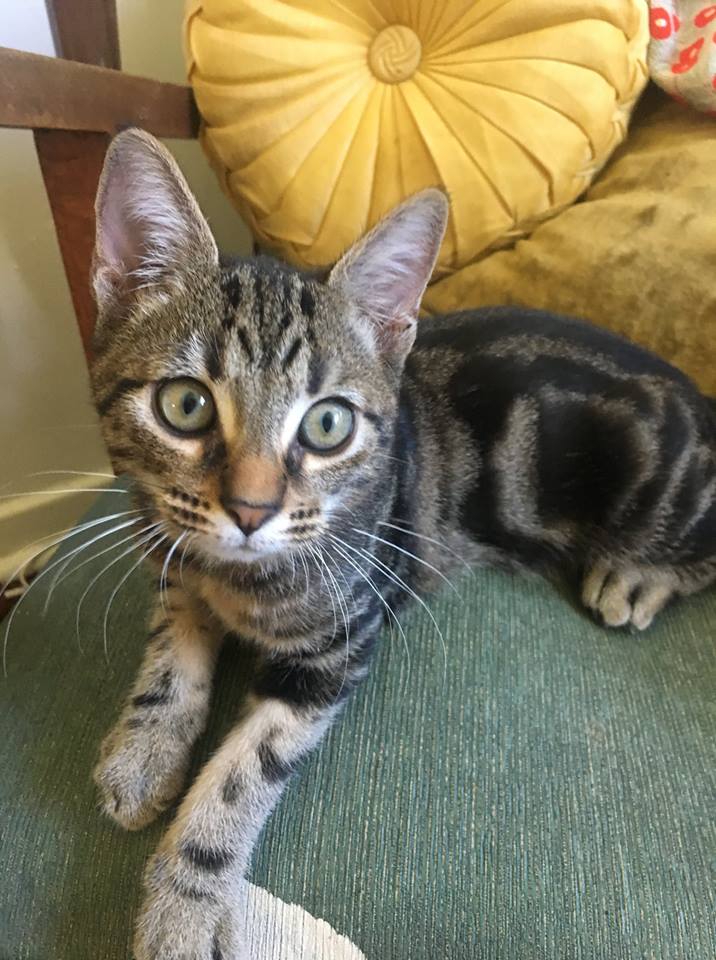 Benny is a gorgeous friendly tabby boy with a heart of gold. He's a little purr machine and great with his two older foster kitty sisters. He likes to play and snuggle and sometimes can't decide which he wants to do more. He would love a home with someone to play with, either a furry friend or a human one. He's very adaptable and bonds quickly. Benny likes to sleep on the bed with his human if at all possible. He will be a loving lap cat for the right home.