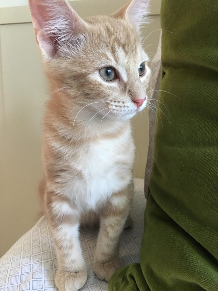 Happy’s pale ginger coat has thick white stripes, and his eyes are grey-blue. His forever home will be a happier place with him in it!