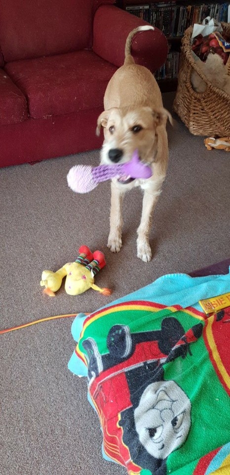 Maisie has been spending much of her time inside the home since coming into care. She enjoys spending time with her family has been practicing her toilet training. Maisie's carer feels her furry foster babe would be best suited to a household with older children as Maisie isn't aware of how big she is!
