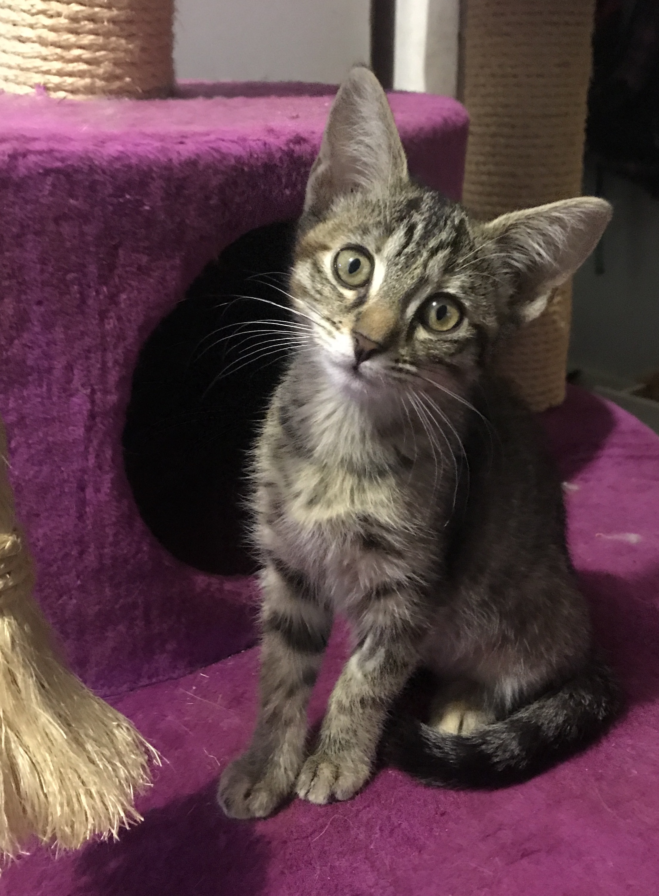 Dolly is around 10 weeks old she is a playful curious and affectionate kitten who is fostered in a home with kids, cats and dogs . Dolly has been desexed microchipped vaccinated and vet checked and is available to adopt now $250 adoption fee.
