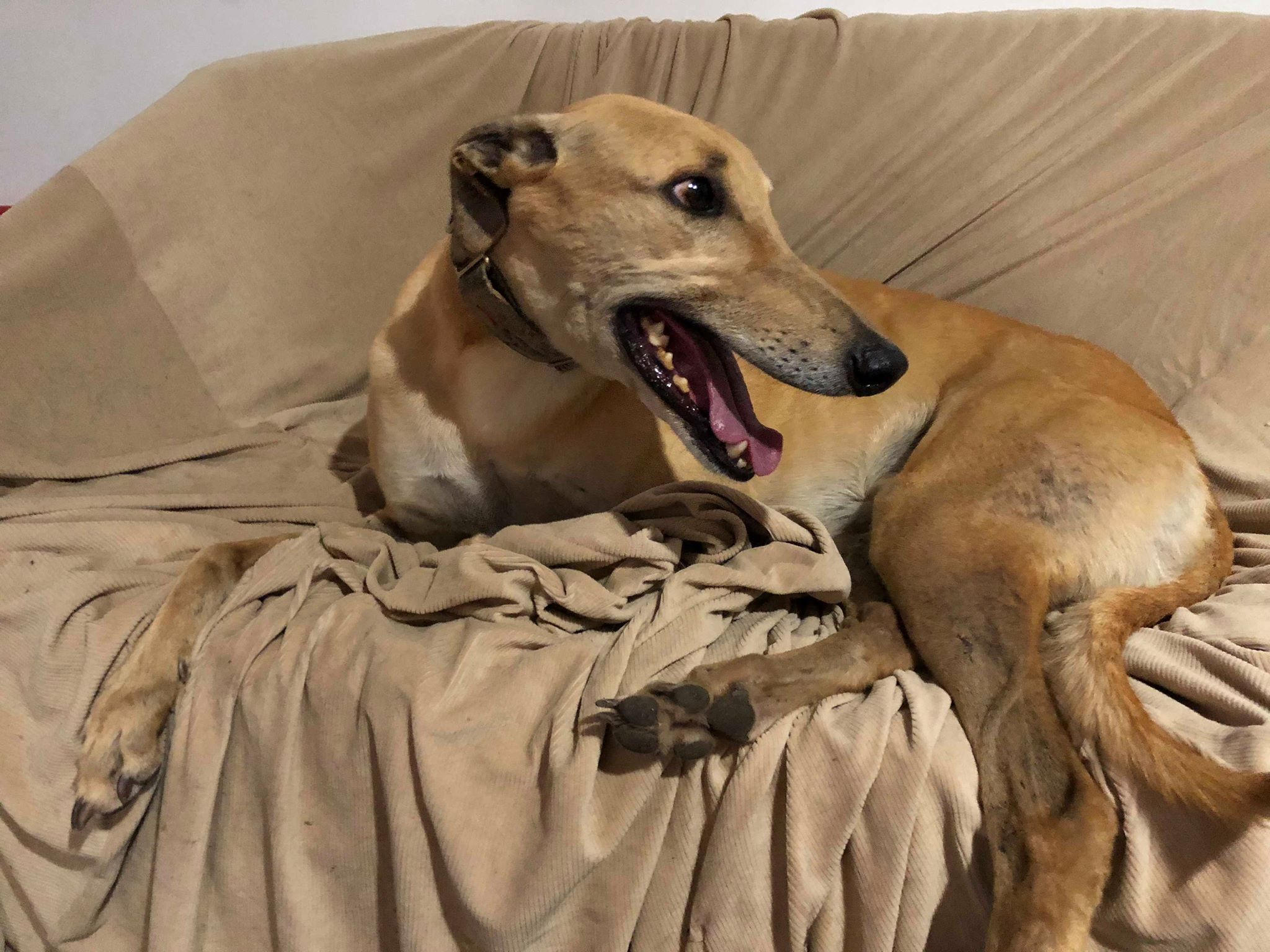 Jethro was reluctantly surrendered to us by his owners, due a change in circumstances beyond their control. As a result, he comes to us having been a pet for the last 4 years and is a very lovely boy. He is house trained and loves absolutely everything that a long standing pet greyhound should like. Jethro lists his interests as; swimming, walks, camping, boating, paddle boarding and car rides. Apparently he is particularly fond of beef jerky and eggs!