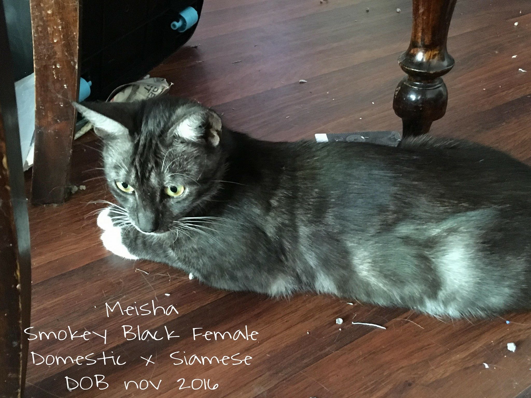 Meisha was found roaming around nearly fullterm pregnant, she is a gorgeous young lady with so much love to give. She has a bit of siamese in her as she is a loud natter and makes sure you know she is there.