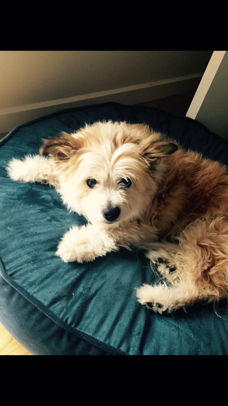 Poppy likes the beach and is fine with quieter placid dogs. Shes fine with all dogs , but needs to be only dog or with another calm dog. Needs to be inside with her people and maybe older kids. She sometimes sneaks off to bed early on her matt in your room and will stay there the night. She likes a car ride too.