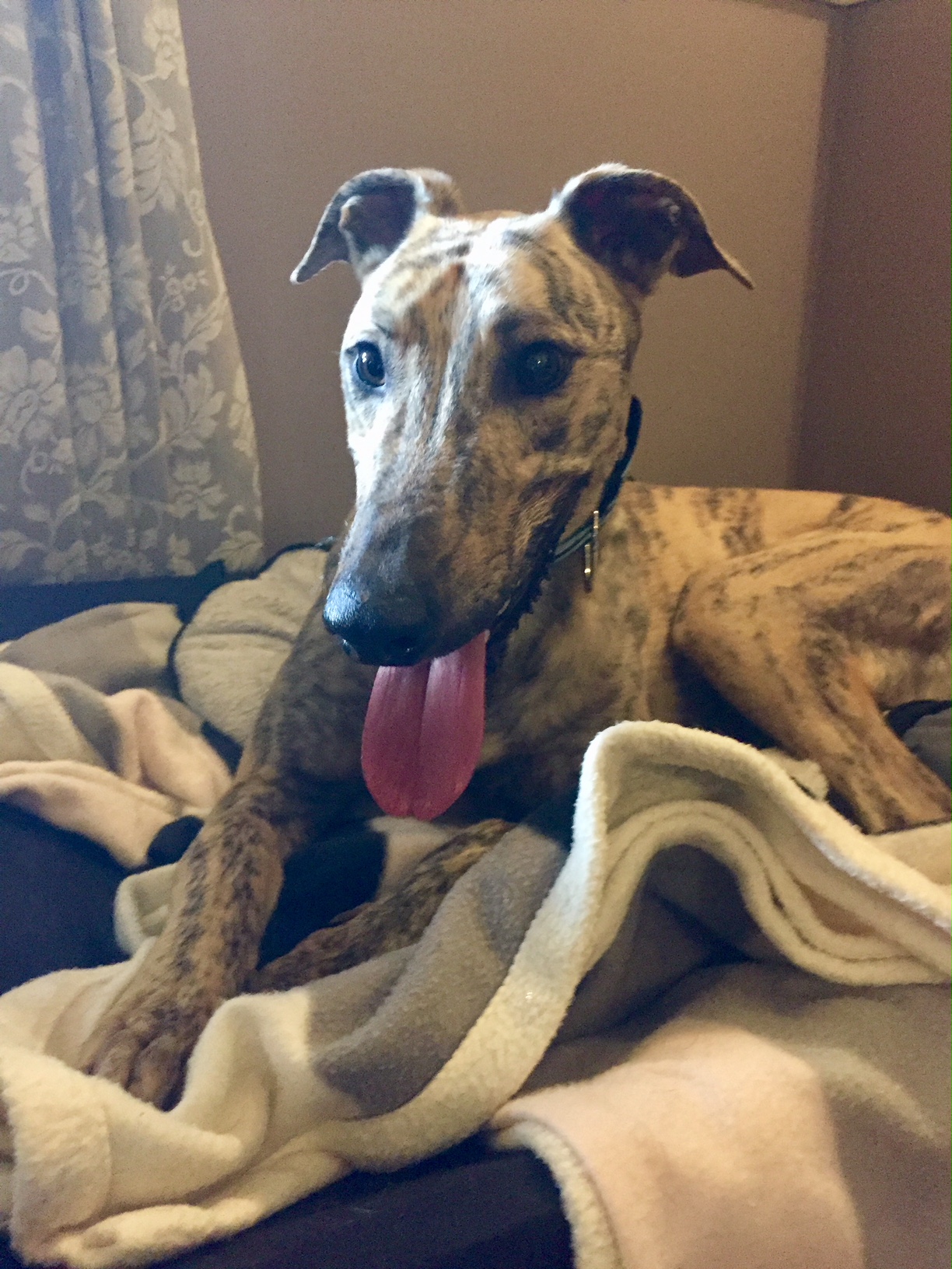 Max is full of fun and doing very well in foster care with two resident greyhounds. He loves being part of the family and is good indoors. He doesn't seem to take much notice of other types of animals he has seen-horses, chooks, and a little dog. He will be able to be integrated with small dogs.