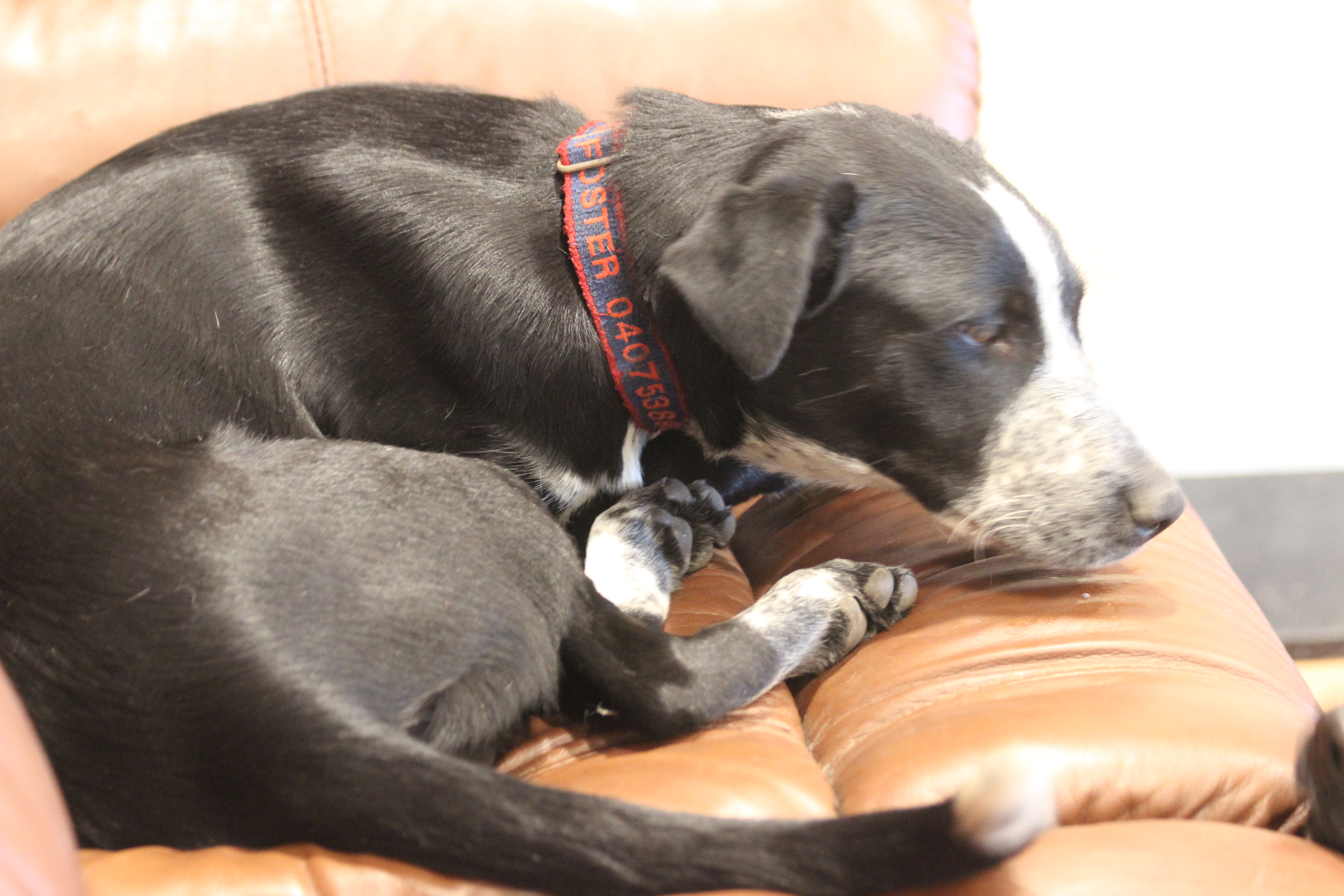 He has been in care with cats, chooks. horses and dogs and is great with all of them. He is super friendly and loves to curl up on the couch at night.