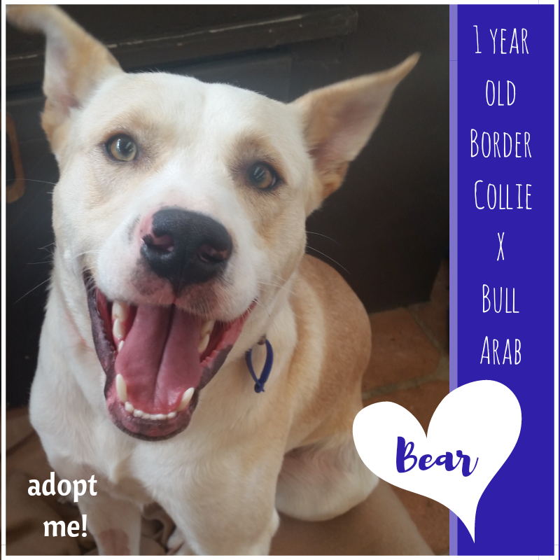 Meet Bear, he is a 1 year old Border Collie x Bull Arab boy.