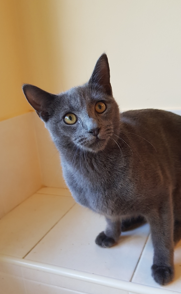 Max is a very handsome blue kitten. He has come from a situation with many other cats and no human men in the house, so although he is very affectionate and friendly to female humans, he is still wary of males. In the month he has been with his foster carer he has become quite used to and comfortable around the man of the house. Max loves a cuddle and has a huge purr. He is a little shy at first, but once you have won his trust he will make a great companion.