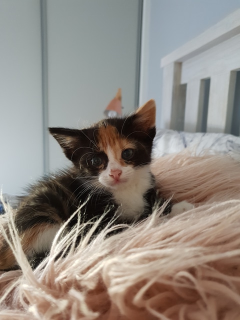 We were all so tiny and really really scared when we first came into care - we hissed the whole way home! But after just a few hours, we started to feel safe and realised that our new mummy wasn't going to hurt us. Within a day - we would never leave her alone! For someone who started out super scared, I am a very confident and loving kitty now. I LOVE to snuggle and for such a little kid I have a really big purr. I use my litter like a good kitty and love my snacks.