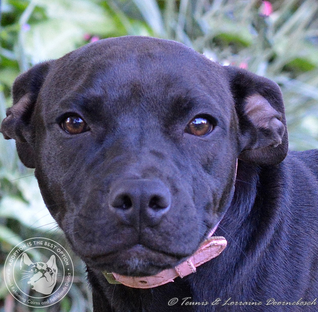 April was born approximately 03.11.17. Although she looks like a Staffy, sounds like a Staffy and lies like a frog . . we have no idea who her parents are, so all we can say about her breed is "she is what she is". If you meet this gorgeous girl, you'll fall in love with her joyfulness, her love of life, her endearing nature. She's a rough and tumble player, very happy and eager to please and gets on well with other dogs. She's cat tolerant, loves kids but does need training to persuade her not to jump up on them. Ideally April should be in a home with lots of activity, a buddy to play with and lots of love and affection and very good fencing, which should go without saying. All her vet work has been done and includes desexing, microchip, vaccinations, flea and worm treatment.