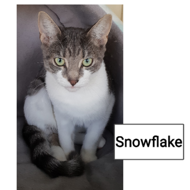Snowflake is a wonderful cat and has a sneaky humour about herself. She has also be saved from death row and enjoying her second chance at life.