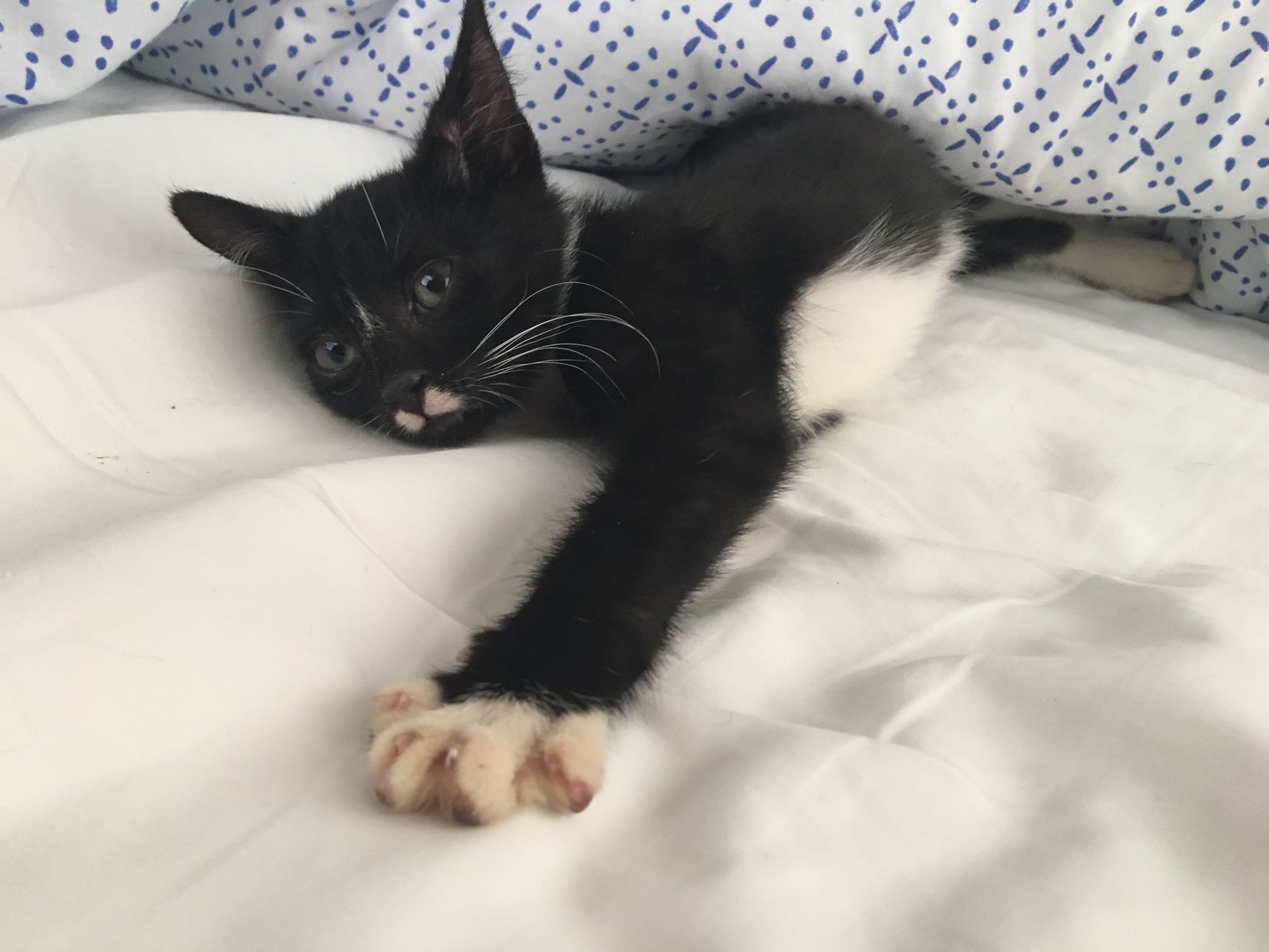 I am a typical kitten - love pats, cuddles, playing, humans and love.