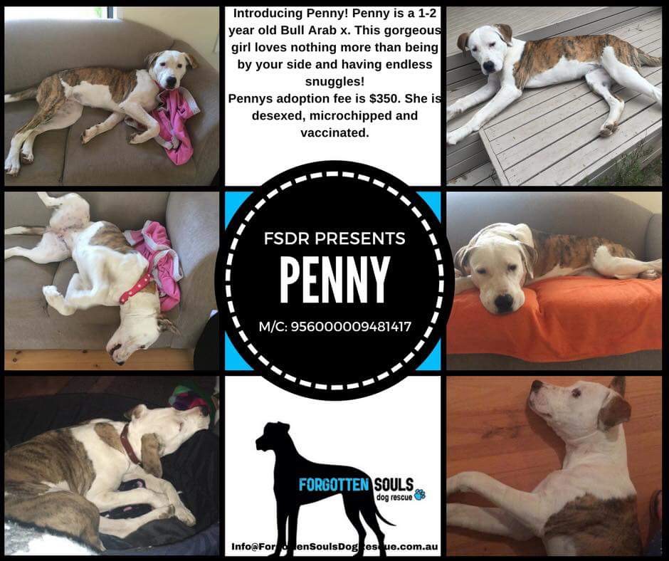Penny is desexed, vaccinated, microchipped, wormed, flea treated.