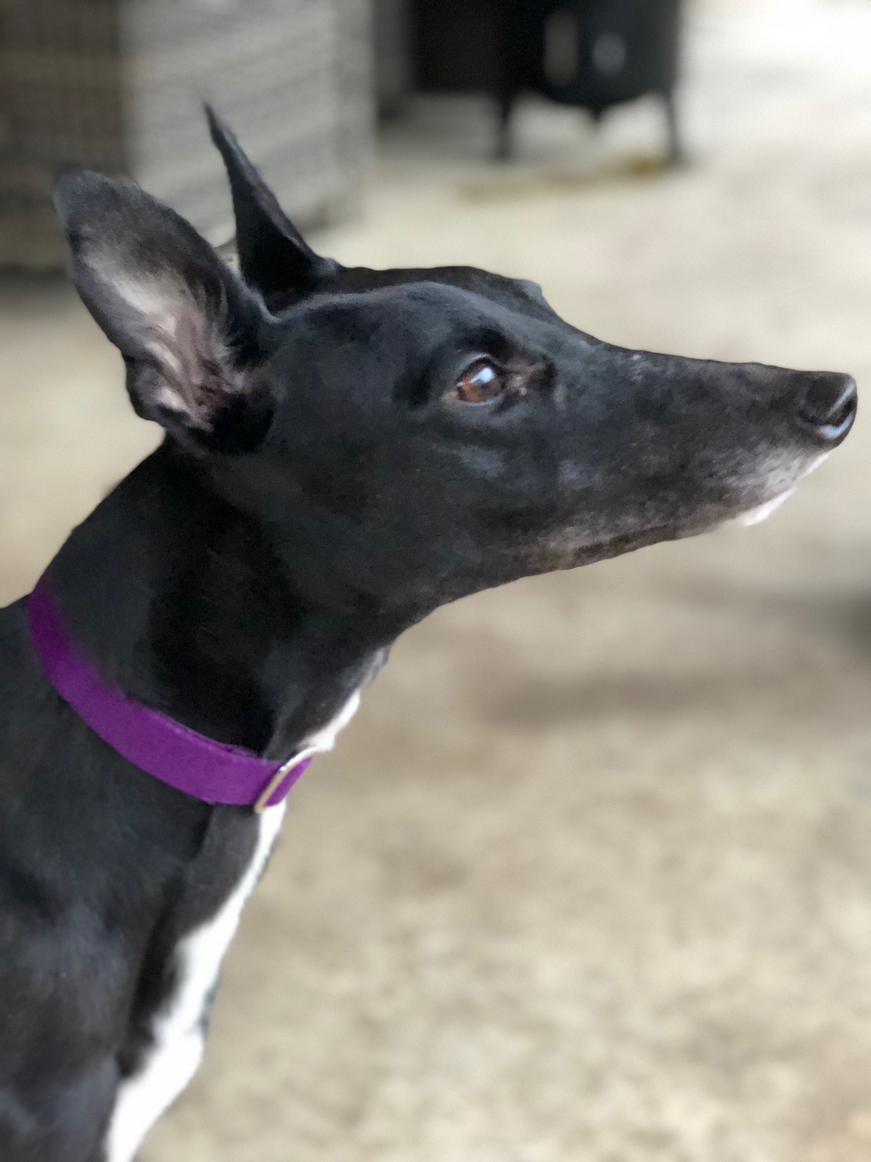 Casey is a very tiny 4 year old little sweetheart, with a playful, inquisitive and cheeky side. She is very affectionate and loves to be around her human and canine friends. She is such a happy little girl! Casey is also one of the smallest greyhounds that you will ever meet. The thing big about Casey, are her ears, when she decides that they will stick straight up!