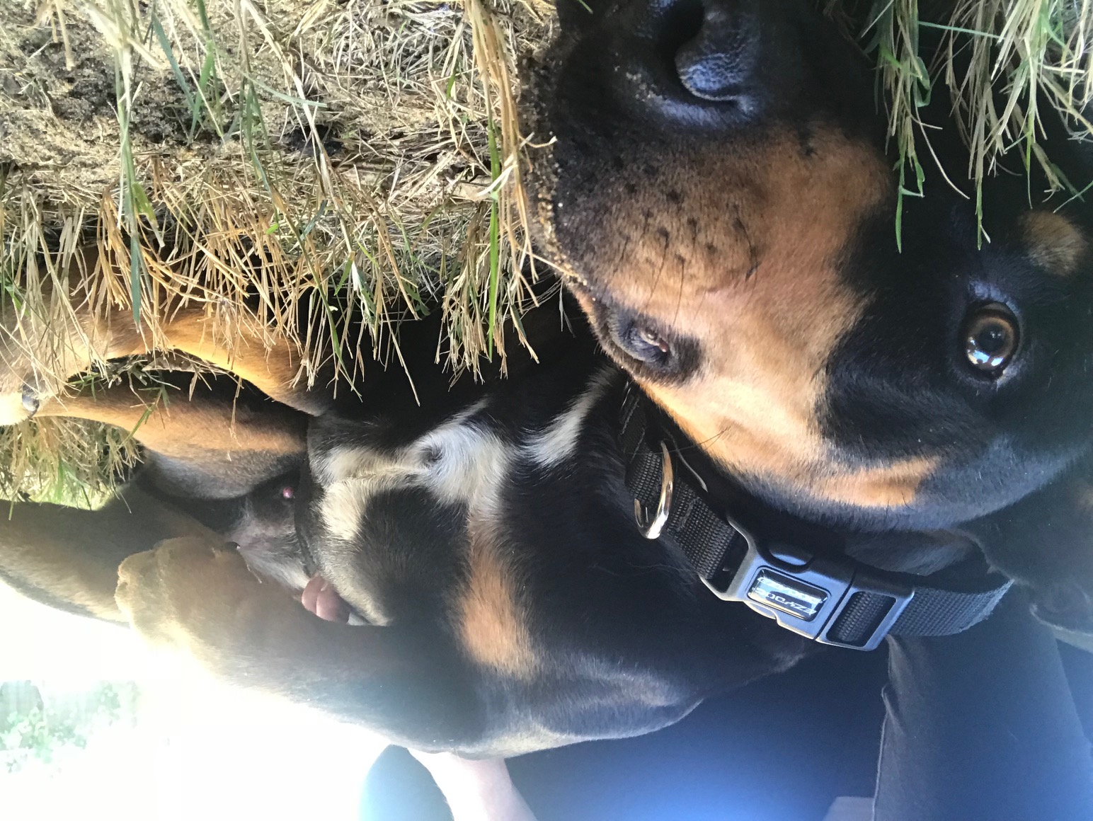 He is great on leash with a halti, although he isn’t a massive fan of it and does on occasion try to get it off; he’s a working progress with just a collar and leash but is getting better.