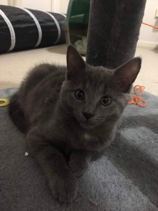 Mini (grey) and Stacey (white and black) are in foster care together. Mini is a sweet little girl who is a bit timid at first meeting. She has settled well into foster care and gets a lot of security from being with Stacey. She is very pretty and will be a beautiful family member in a quiet household.