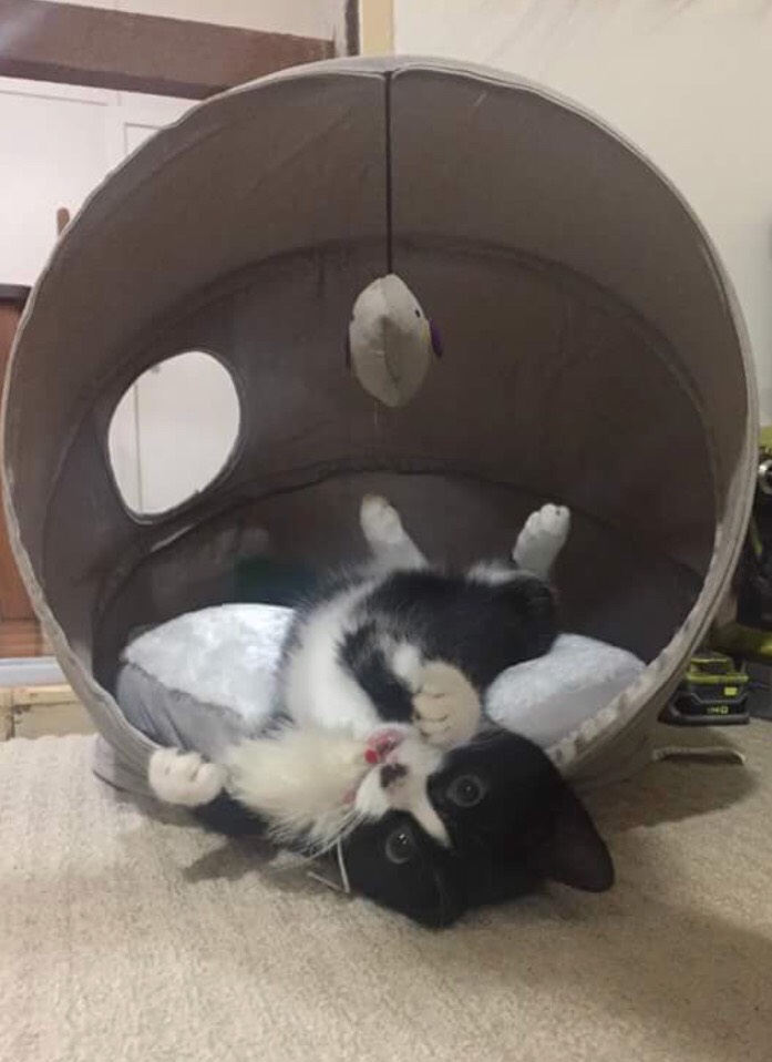 He was a tad shy but is already more comfortable around us all. He is very playful but also loves to snuggle.