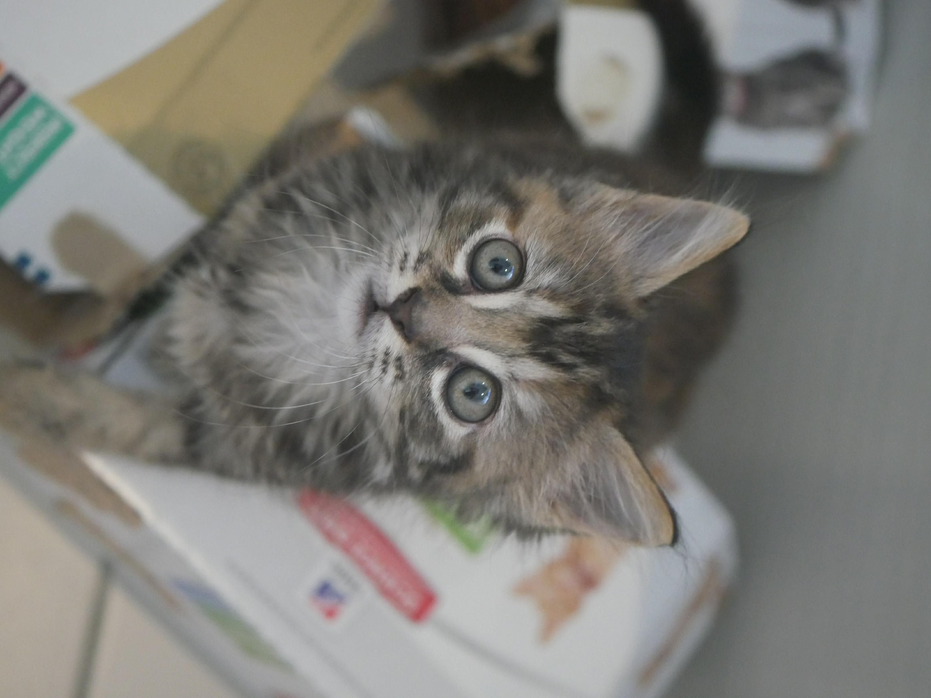 Little Zelda went into our vets for her first vaccination this week and is now ready to go up for pre adoption. Zelda and her three sisters joined our rescue when they were only three weeks old, after they were surrendered to a veterinary clinic. Zelda has always been the biggest out of her sisters and is also slightly more shy than her very out going siblings. She loves cuddles with her foster humans and gets along well with the other kitties in her foster home. We think Zelda's coat is going to be medium length as she is starting to grow into a real little tabby and ginger fluff ball.