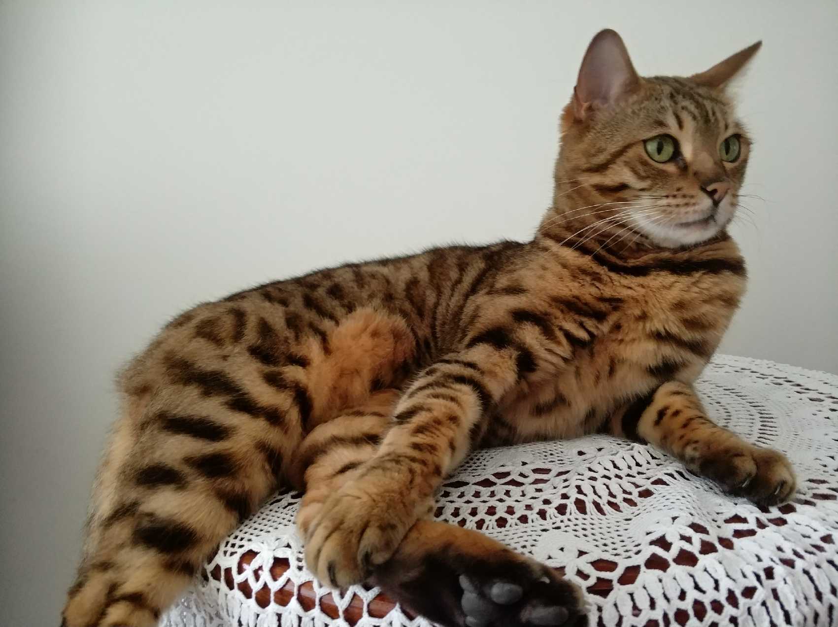 Poppy is an absolutely gorgeous girl, with an adventurous playful spirit. Being a purebred bengal, she has the most amazing markings on her super soft fur coat. Poppy loves to fetch a minty and will happily play with you for as long you want! She's an independent girl, happy to say hello now and then, but will occupy herself throughout the day. At night she'll be by your side happy to watch whatever's on the telly. She is used to a quiet home and would suit a single/couple or older family.