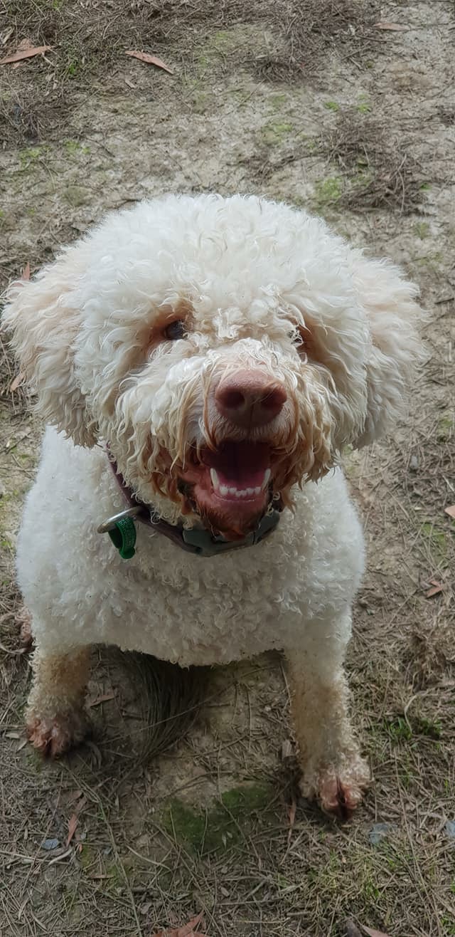 Hi, my name is Teddy. I’m a 4 year old Lagotto ... ok, go on, Google it! Not many people know my breed but I can tell you ... I’m Italian! Chiao! Of course I love water - my breed name actually means Lake Dog, so it only seems fit that I live up to it right? To touch me, I kinda feel like a lamb. Weird but really cool at the same time.