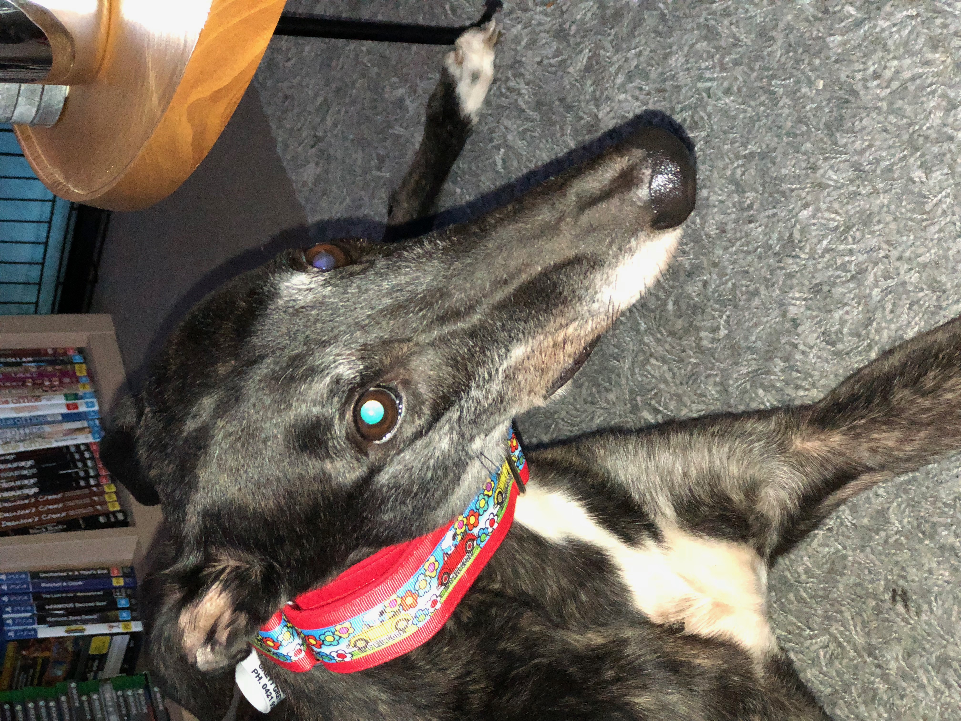 Tess is a very gentle dark brindle coloured girl who will steal your heart. She is a sweetie who loves nothing more than to chill on her bed, enjoy basking in the sunshine and watching the world go by. She is a true couch potato and absolutely loves her ear scratches and cuddles.