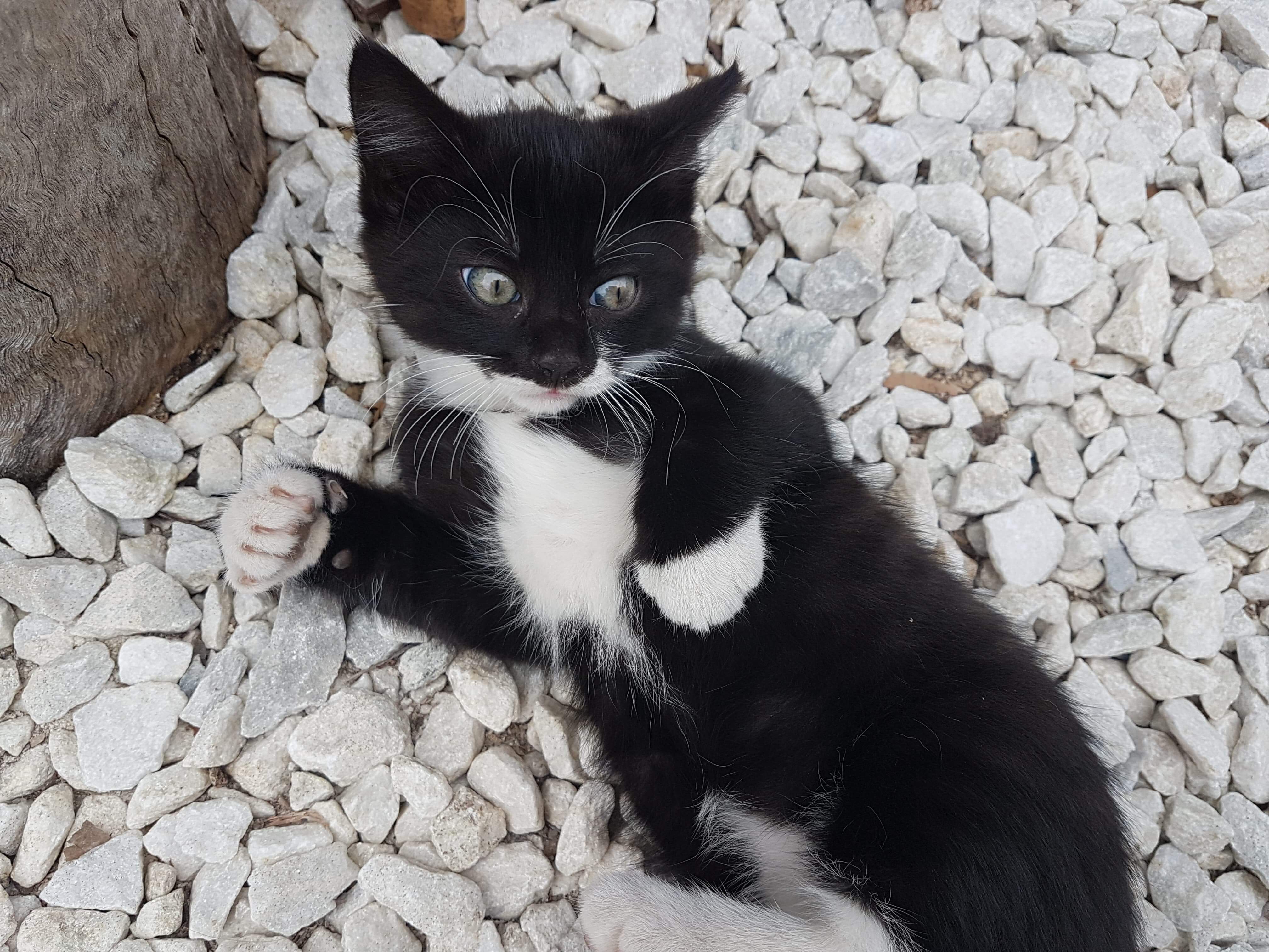 Maxi is a 14 week old tuxedo boy, with his little white chin and socks he's a very handsome little man.
