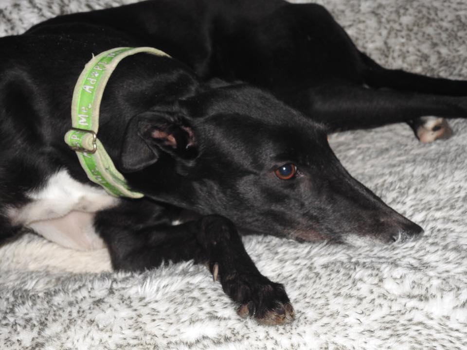 A littleish girl, if you could say greyhounds are little, jet black with a splash of white on her chest and dotted on her feet as well, she is the 'Bell of the Ball', a gorgeous gal. She loooves being inside and loves nothing better to be with her beloved human friends. She is great company and would make an ideal companion dog and would be quite happy as an only dog. Although she would be happy to share the love with another medium/large canine friend, but isn't keen on smaller ones or kittycats either. Chidren 7 years of age and upwards would also be ideal siblings for Bella.