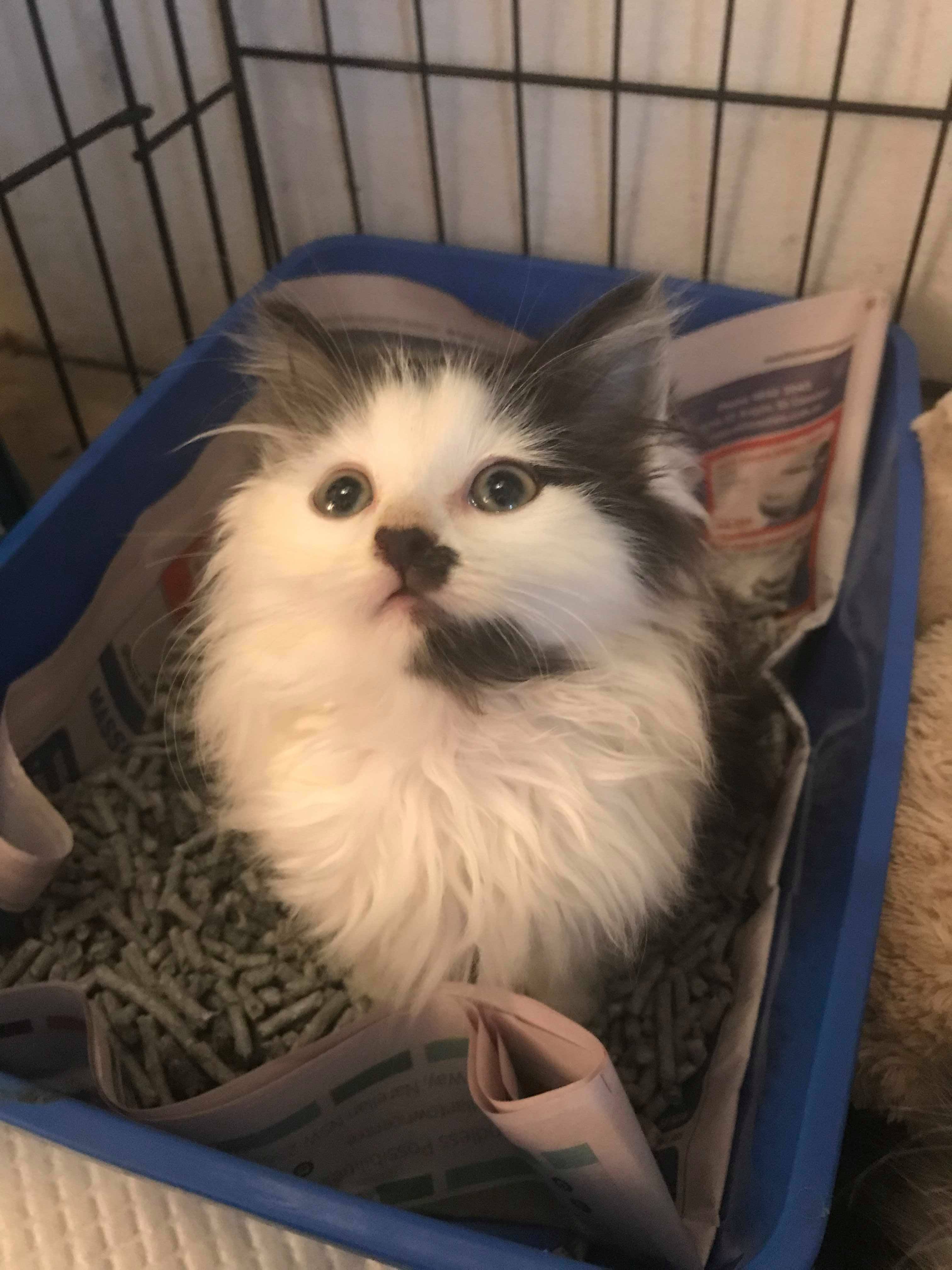 Charlie Chaplin is a stunning black and white domestic long hair kitten who will turn 8 wees old this Saturday, 9th June. He came from a gorgeous litter of stray kittens who were found near the Ikea at Rhodes. They were rescued and brought into our clinic. We vaccinated and microchipped them and they have flourished in foster care for the last two weeks.