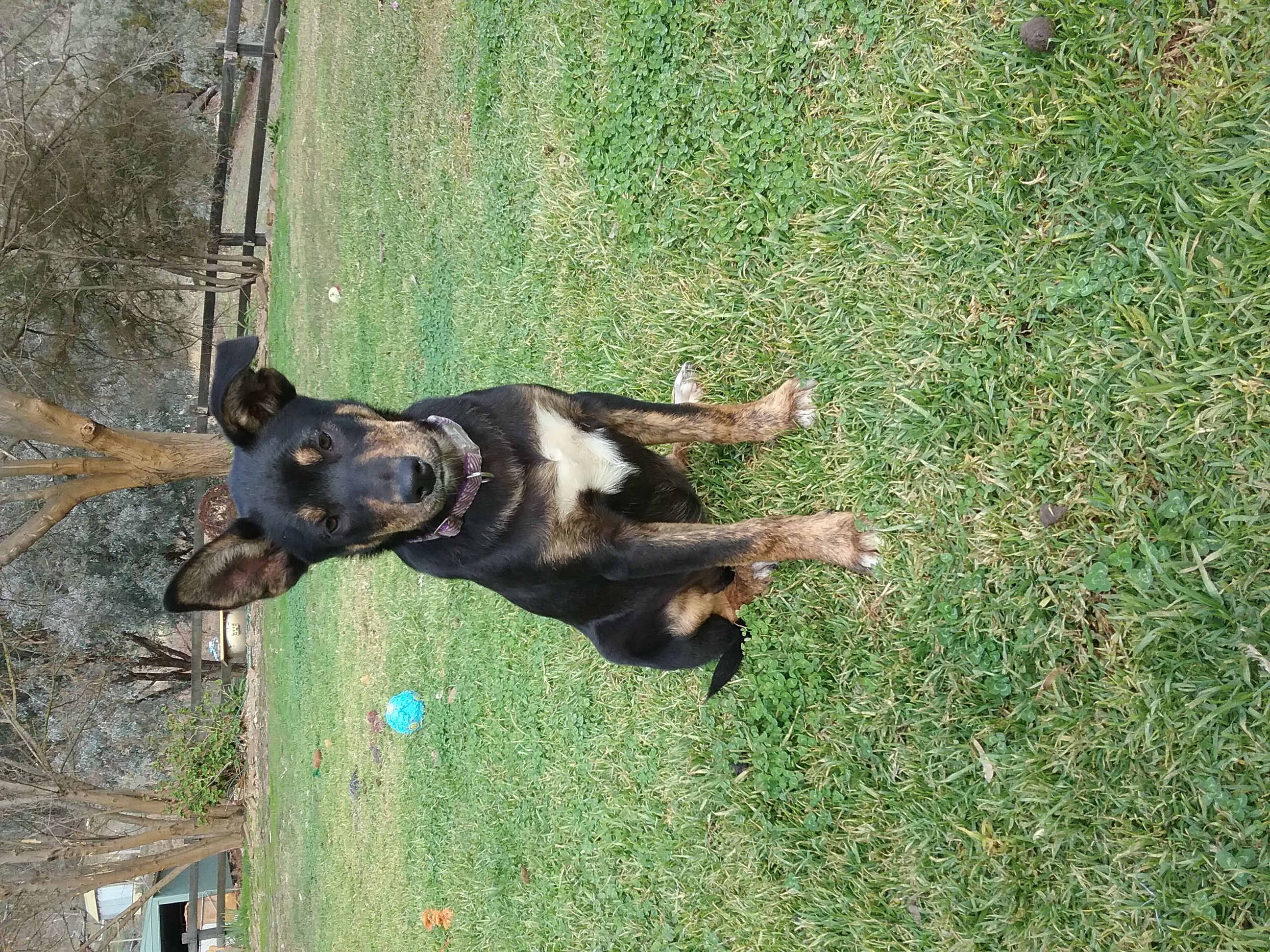 She is currently living with dogs of all sizes and cats she is really well socialised. Not suitable for a small yard or to be left alone all day unless she has a pooch playmate.
