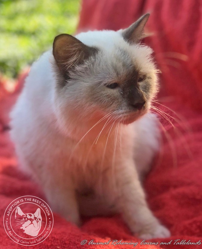 He needs to be brushed regularly as his hair is quite long. He's a big boy but actually doesn't weigh that much, less than 5kg and he's used to being an indoor only cat and is very good with his litter. He also has a slight problem in that he is a little uncoordinated but once he gets to know an area he navigates it perfectly. He's kind of like a baby I guess, stares at you wide eyed sometimes and you just wonder what he is thinking. He can still jump, play, smooch normally, just stumbles a little occasionally, is NOT in pain and doesn't ever seem to get frustrated. This condition might be the result of him having Calici as a kitten and that may have affected his brain development, but it is stable now and his quality of life doesn't seem to be diminished by it at all. We're very confident that Bernie is going to make a fabulous hot water bottle for someone this winter and he will appreciate being allowed to do so. All his vet work has been done and includes desexing, microchip, vaccinations, flea and worm treatment.