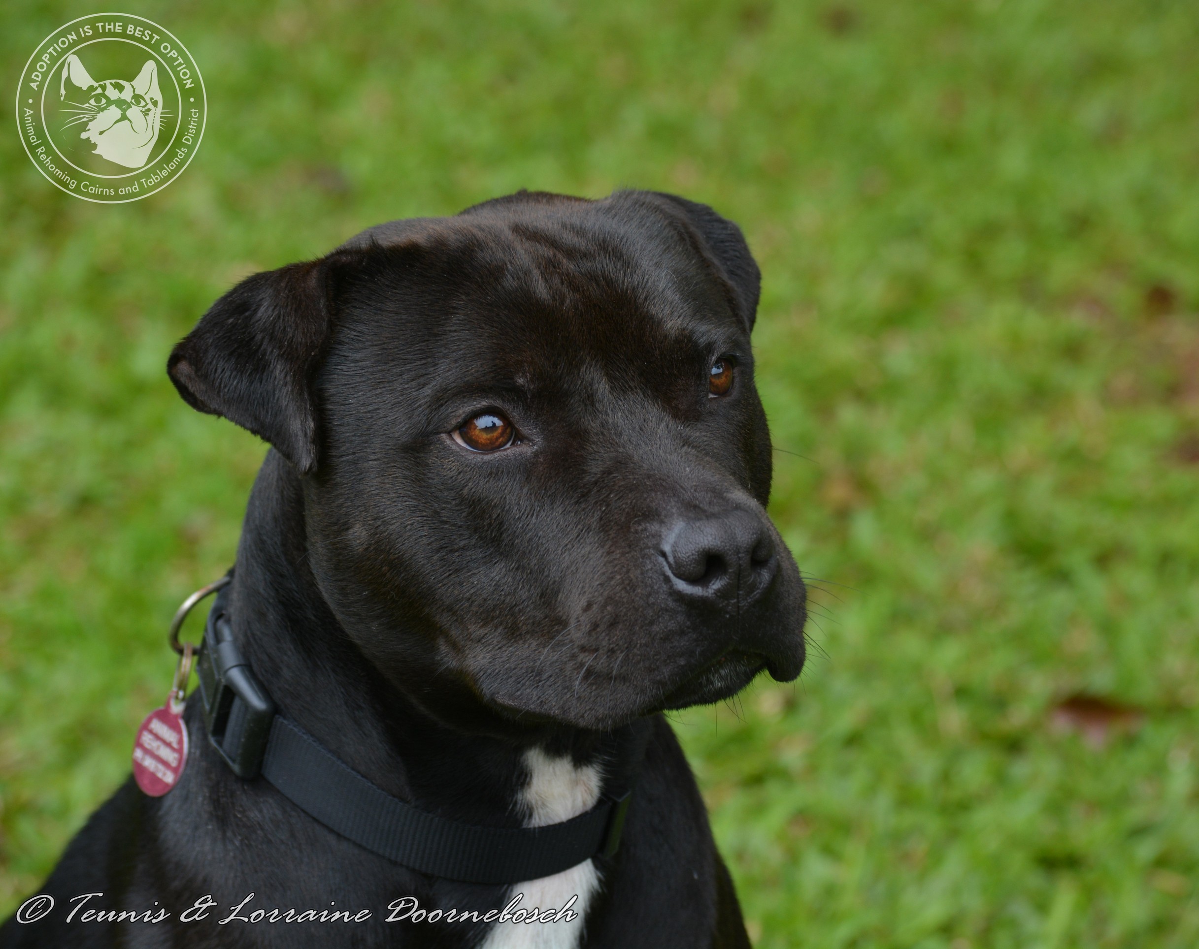 Cobalt is a magnificent young boy. We'll confirm his age when he visits our vet soon. He is a staffy cross of course, but that's as much as we can say with any confidence. He has probably reached full height which is about 40 cm at the shoulder but being so young, he is bound to muscle up a lot more. What an engaging personality he has. Very good natured showing no signs of aggression towards other dogs, in fact he really needs a playmate. A little too interested in cats but obviously just wants to play with them, not aggressively but too enthusiastically for their liking. He should be easy to train as someone has already put some time into him and he sits and waits for his food and is very obedient. All his vetwork is done including desexing, microchip, vaccination, heart worm tests and worm/flea treatment. If you'd like to know more about adopting this beautiful boy, please email arcatd@hotmail.com