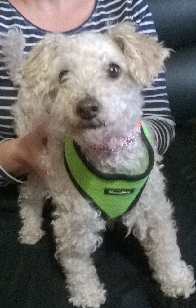She has a non shedding coat suitable for people with allergies and will need clipping at the grooming salon 6 times per year. She is toilet trained,travels well in the car,is good to groom and good at the Vets.