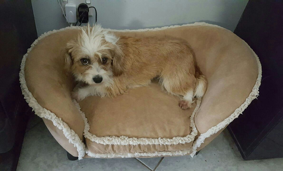 Poppy is a vibrant little three year old wire haired Terrer cross who stands around 30cm tall.