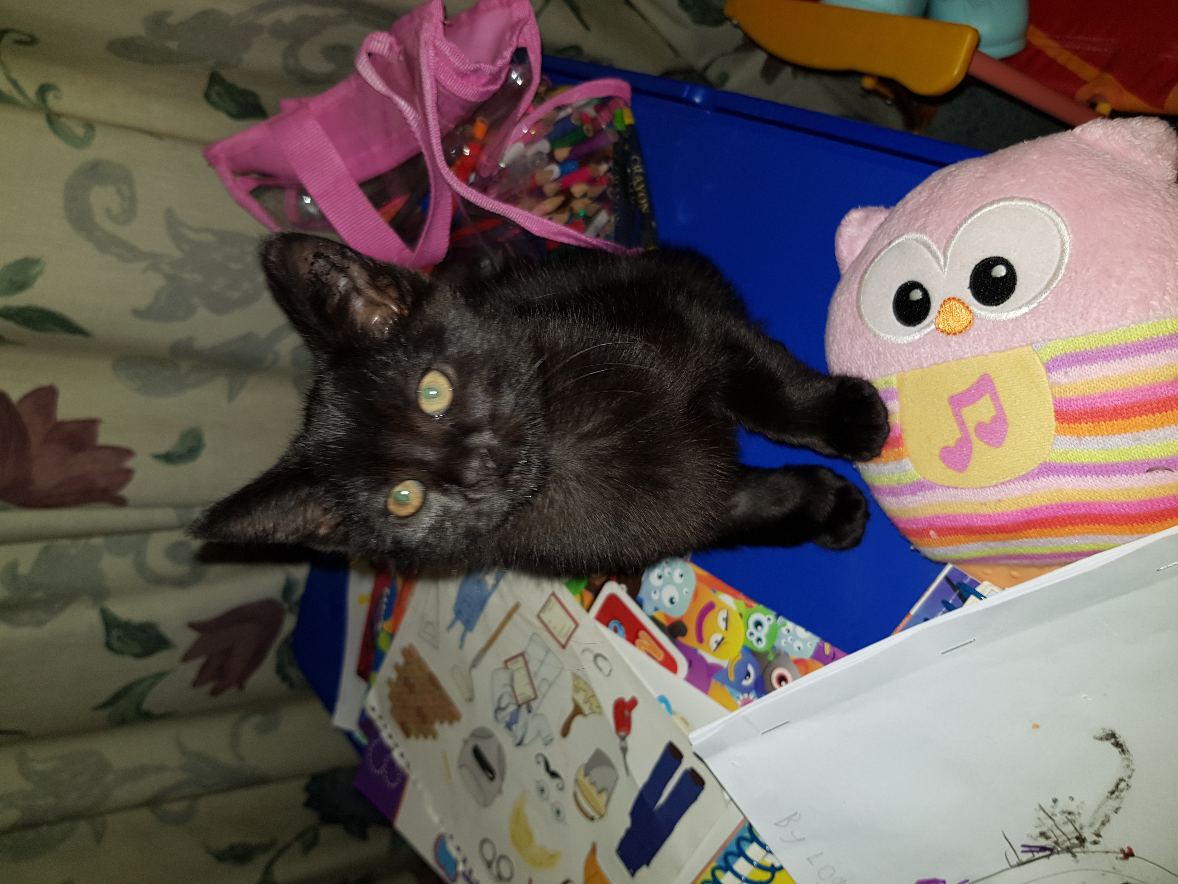 Archie is one of four foster kittens in my care, black as night just like his other 2 brothers. I'm learning to tell him apart because he is quite fond of his sister Lucy and seeks her out for co sleeping in the sunshine.